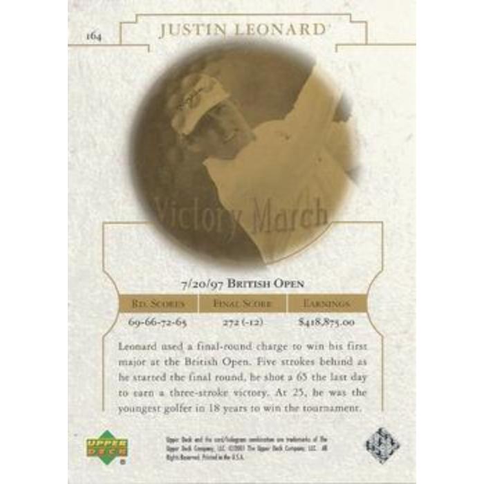Justin Leonard (Victory Match) - 2001 Upper Deck Golf #164
